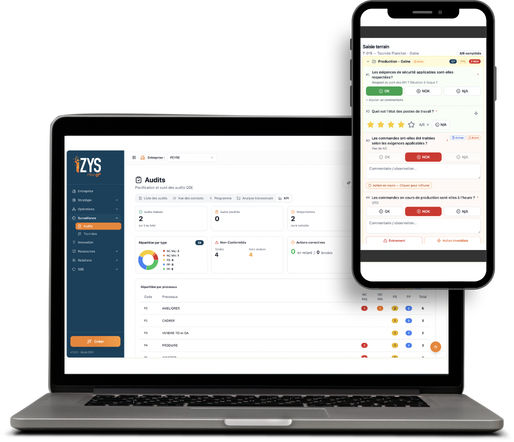 iZYS unifie votre pilotage Qualité, Sécurité et Environnement dans une plateforme interconnectée — du bureau au terrain, de la stratégie à l'action, sans aucune ressaisie.