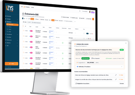 Fini les descriptions à 3 mots qui rendent toute analyse impossible. iZYS guide vos équipes pour capturer le bon niveau de détail dès la saisie. Résultat : une analyse causale fondée sur des données reelles, adaptée au contexte de votre entreprise. Vos plans d'action partent enfin de la bonne base.